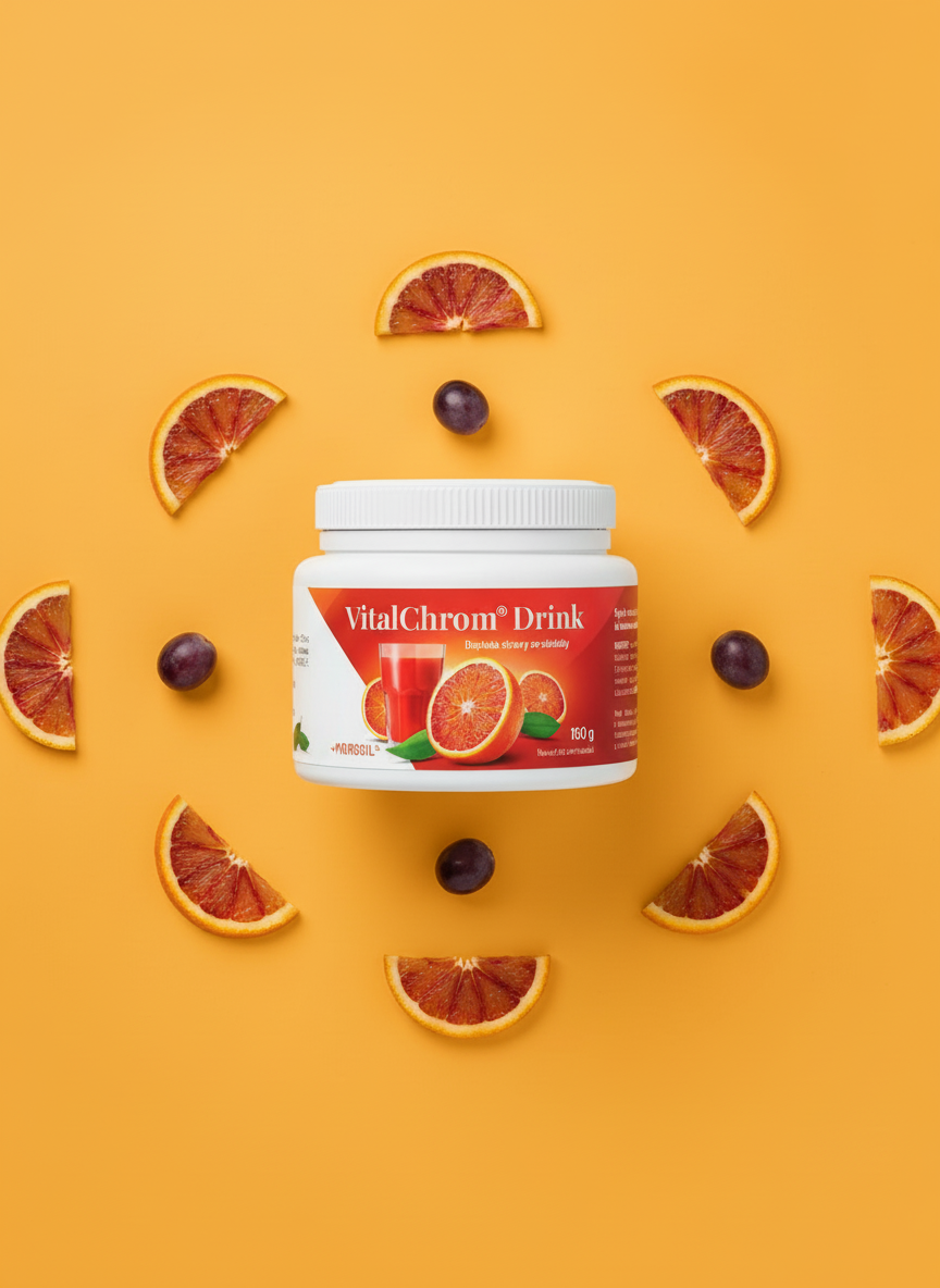 VitalChrom Drink es una bebida en polvo de sabor a naranja roja, especialmente formulada para quienes desean perder peso de forma efectiva y sostenida. Su fórmula avanzada combina el extracto patentado MOROSIL®, con efecto reductor de grasa corporal, y lactato de cromo, un compuesto esencial que activa el metabolismo y favorece la quema de grasas.